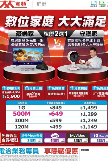 太平地區數位有線電視、光直達光纖上網。 太平地區有線電視+200M網路專案只要 $899!200M換算價只要$349