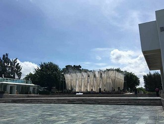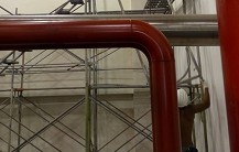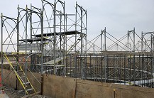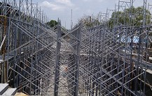 利用萬向活扣將鋼管組合而成之施工架,可塑性高,已逐漸取代傳統竹架。