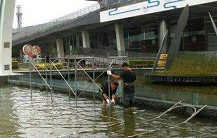 工程需求搭設施工架於水中。